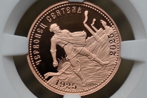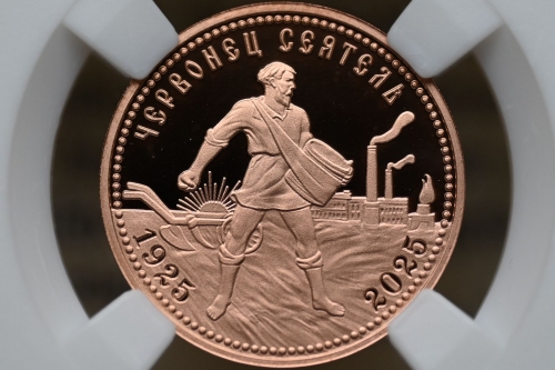 Монета жетон медь Червонец Сеятель 2025 г., к 100-летию Червонца 1925г.,в слабе ННР PROOF!!!