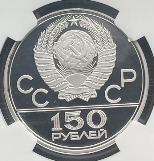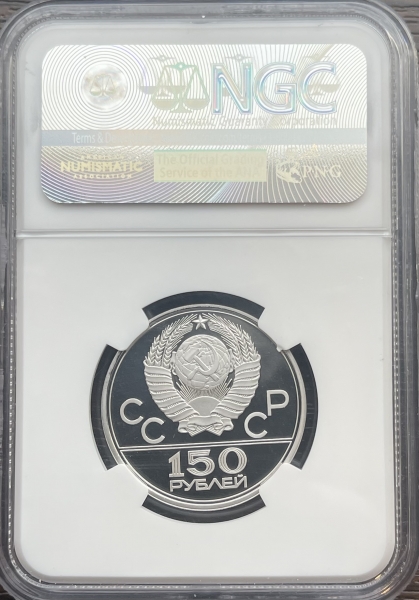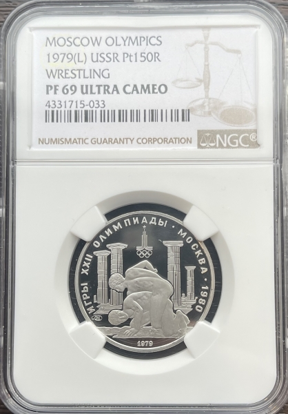 Платиновая монета 150 рублей "Античные борцы"1979г. ЛМД в слабе NGC PROOF 69 ULTRA CAMEO