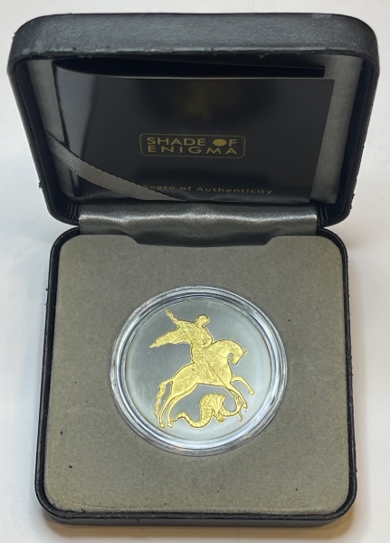 изображение Георгия Победоносца верхом на коне, поражающего копьем змея.