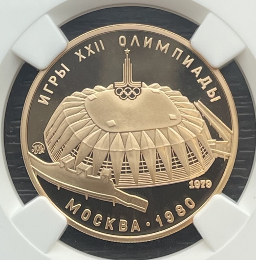 Сверху вдоль канта слова «ИГРЫ XXII ОЛИМПИАДЫ», ниже слева монограмма монетного двора «ММД», в середине спортивный зал «Дружба», ниже справа год выпуска монеты «1979», внизу у края монеты разделенные точкой слово «МОСКВА» и год проведения XXII Олимпиады «1980».