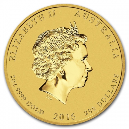 На аверсе помещено изображение профиля королевы Елизаветы II. Сверху надпись ELIZABETH II и AUSTRALIA. Внизу по ободу вес монеты (2 oz - две тройские унции), проба (9999 gold), год выпуска (2016) и номинал (200 DOLLARS - 200 долларов).