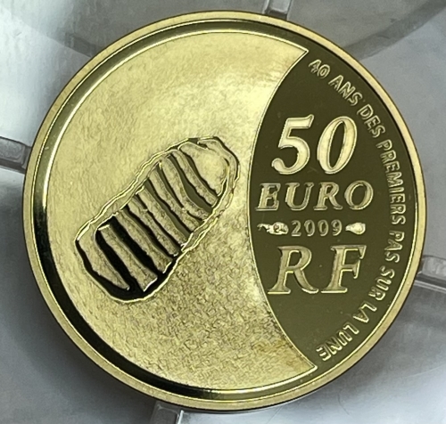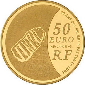 Продолжает астрономическую тематику Французская Республика. Дело в том, что в 2009 году отмечается еще и 40-летний юбилей первой высадки человека на Луну. Парижский монетный двор выпустил первую в мире серию монет выпуклой формы, запечатлев след ноги астронавта в металле.