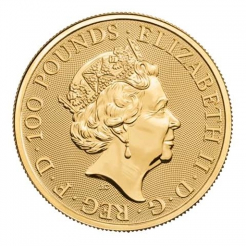 Аверс: На аверсе золотой инвестиционной монеты "Черный бык" - портрет Ее Величества Королевы Елизаветы II, выполненный Джоди Кларком, представленный на британских монетах с 2015 года (так называемый пятый тип монетного портрета королевы). По краю монеты расположены надписи, указывающие номинал монеты и имя Королевы: 100 POUNDS / ELIZABETH II / D / G / REG / F / D.